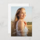 anúncio de graduação em fotos e convite simples e elegante com script branco.