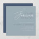 Um convite casual e divertido para o casamento com um senso de humor com uma letra divertida de texto que diz "É apenas para sempre sem grande negócio" com uma combinação de serifa e uma fonte um pouco cursiva em fundo azul empoeirado.