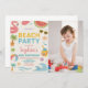 Faça a vibração para uma legal celebração de verão com este convite e decoração de aniversário de praia para crianças! Com cores ousadas, elementos oceânicos, palmeiras, bolas de praia e luz do sol, esta design é perfeita para festas de aniversário modernas pelo mar, na piscina, ou no seu quintal. Personalize com o nome, a idade e os detalhes da festa do seu filho. Uma escolha divertida e na moda para meninos ou meninas que amam o verão! Conclua a aparência com sinais correspondentes, etiquetas de favorecimento e acessórios de partes tropicais.