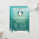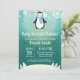 É Frio Lá Fora, Chuveiro de Bebê Pinguim de Inverno. Chuveiro de Bebê Menino ou Menina. Floco de Neve Branco e Azul. Pinguim. Convite de Chuveiro de Bebê de Férias de Inverno. Fundo Aqua. Para personalização adicional, clique no botão "Personalizar" e use nossa ferramenta de design para modificar este modelo.