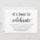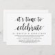 Cartão de convite de casamento às escondidas com tema de escrita moderna (É Hora de Celebrar). É perfeito para o seu jantar de casamento casual às escondidas à beira do lago, dança e festa.