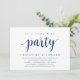 Convite temático moderno rústico com letra cursiva azul-marinho (com título do cartão: É hora de festejar). É perfeito para o seu pós-casamento / festa de celebração pós-casamento. Adicione seus detalhes em fonte / letra preta correspondente.