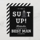 Cartões de proposta personalizados - Você aceita? Maneira divertida de perguntar a alguém para ser seu Melhor Amigo, Padrinho, Portador do Anel, Celebrante de Casamento, etc. Com um fundo preto que pode ser alterado para qualquer cor, as palavras "SE APRONTAR!" com o 'i' em forma de smoking e um modelo para personalizar.