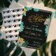 Belo convite de aniversário da selva selvagem. Nossa Design apresenta nossas próprias folhas tropicais pintadas pela mão e flores. Os amarelos brilhantes, os verdes e os azuis adicionam uma cor pop ao nosso tema da selva safari. Nossa linda mão pintada de zebra aquática e animais-leopardo estão escondidos na coloração da floresta, cada um vestindo uma coroa de ouro falsa. Arrancas estilizadas e padrões tribais completam nosso convite de aniversário selvagem. Todas as ilustrações contidas no nosso convite de um aniversário selvagem são obras de arte originais feitas à mão pela Moodthology.
