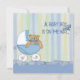 Urso de peluche no carrinho para convite de chá para o bebê.