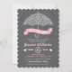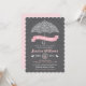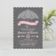 Um guarda-chuva bonito do estilo do laço decorado com pingos de chuva, redemoinhos das nuvens e parafusos do relâmpago. Uma beira scalloped termina este convite moderno do chá do bebé em um quadro. Personalize com seu próprio texto. Verifique por favor minha loja para ver se há mais como esta. Ilustração original pelo pj_design.