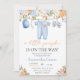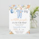 Celebre sua doce abóbora no caminho com este adorável... é um convite para Chás de fraldas de abóbora. Este convite apresenta elementos essenciais para o bebê, como um cortador azul, chapéu, botas e pacificador pendurados numa linha de roupa rústica com um pequeno detalhe de abóbora e florais de queda suave em tons de azul, marfim e bege. Bem-vindos à sua pequena cara de estilo com este doce e sazonal convite para chás de fraldas! BBS128