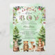 Celebre a chegada iminente do seu pequeno com o nosso Convite de Chá de fraldas "É Um Rapaz", de Cores Aquáticas, Animais da Floresta! Adorado com amigos encantadores da floresta, flores doces de bagas e um toque de encanto, este convite captura a alegria e a magia de acolher um menino.