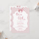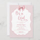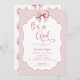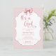 Elegante É um convite para Chás de fraldas de Arco Rosa. Linda caligrafia rosa e encantadora, com fita pintada e padrão de arco no verso.