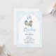 Celebre a alegria de uma nova chegada com este charmoso convite de chá de fraldas "É um Menino". Apresentando uma paleta de cor azul macia, fundo de aquarela, ilustração adorável de menino bebê, balões de coração flutuantes em berço e berço móvel, esta design é perfeita para um chá de fraldas doce e memorável. Personalize o texto com os detalhes do evento, incluindo o nome da honra, data, hora, local, RSVP e registro. Um convite perfeito para as celebrações modernas, tradicionais ou caprichosas de bebês.