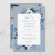 Este elegante convite de chá de fraldas floral azul empoeirado 'é um menino' pode ser personalizado com suas informações na tipografia moderna, uma foto especial no verso, e seu código QR de registro. Projetado por Thisnotme©