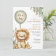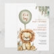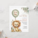 É um convite para chás de fraldas de cor d'água de um menino, leão de bebê e balão. Encantador e caprichoso.