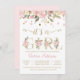 Menina cor d'água cor floral rosa e chá de fraldas de ouro convite com bonito flores de aquarela e floral de ouro É uma palavra de menina. Este elegante convite para chás de fraldas rosa e ouro é facilmente personalizado com o seu texto. Você também pode adicionar uma cor de fundo à frente e atrás.
