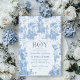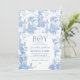 Bem-vindos ao nosso encantador Modelo de Convite à Chá de fraldas do Safari Azul! Celebre a chegada iminente do seu selvagem com este adorável e editável modelo com uma encantadora selva natureza e um lindo cártaro bebê - leão, elefante, girafa no estilo francês toile de jouy