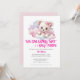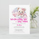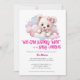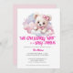 Um belo chá de fraldas Convite com um filhote de urso bonito tocando em floresta em nuvens brancas