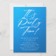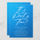 É o Convite Elegante Simples de Convite Elegante para 4ª Festa de aniversário do Partido, 40º Quarenta, com um design minimalista com o texto "It's Party Time!" na tipografia moderna do roteiro de caligrafia branca e personalizado abaixo com seu texto personalizado sobre fundo azul. O estilo e a cor da fonte de texto editável podem ser alterados. Concebido por © Evco Studio www.zazzle.com/store/evcostudio
