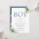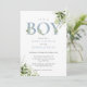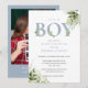 Convite É um menino Dusty Blue Greenery Foto Chá de Bebê