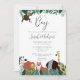 Este convite de chá de bebê de safari de animais para menino pode ser personalizado com suas informações e iniciais de monograma no verso, em tipografia moderna e elegante. Criado por Thisisnotme©