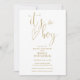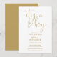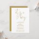 Este convite de chá de bebê com letra dourada elegante pode ser personalizado com todas as informações da sua celebração especial. Projetado por Thisisnotme©
