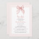É uma garota! Abrace a chegada de um precioso pequeno com o nosso elegante convite para chás de fraldas cor-de-rosa e branco. Apresentando um delicado arco cor-de-rosa-coquete no topo, este design eterno apresenta uma caligrafia na moda cor-de-rosa e cinza para apresentar os detalhes do evento. O lado inverso corresponde a cor-de-rosa sólido. Celebre a futura mãe com amor e alegria! Personalize este convite hoje, e não hesite em contactar se precisar de assistência adicional.