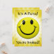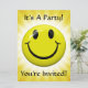 É uma festa! convite com uma grande face amarela em um visual 3d de um pino real, tudo em um fundo brilhante e alegre de efeito de explosão solar legal.Personalize facilmente o texto frente e atrás. Excelente para aniversários, formandos, eventos especiais, para bebês, crianças, adolescentes e homens e mulheres de todas as idades!