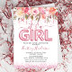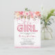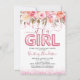 Convite É uma menina Festa de Bebê com Flor Rosa