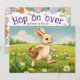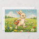 Hop on over for an Easter brunch and egg hunt! Invite your guests to your party with this charming super adorable invitation featuring a joyful white bunny hops through a sun-drenched meadow bursting with wildflowers — daisies, tulips, bluebells, and dandelions — while carrying a woven basket filled with colorful, patterned Easter eggs.