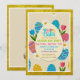 Invite friends and family to a joyful celebration with this Colorful Easter Egg Hunt Invitation Card. Featuring a playful arrangement of patterned Easter eggs, blooming pink and blue tulips, and cheerful daisies, this design captures the vibrant energy of spring. The card is elegantly finished with a textured gold foil-style border that adds a touch of premium sparkle to your holiday greetings.