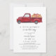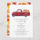 Este convite de chá de fraldas apresenta um caminhão de cor vermelha com abóboras festivas no leito do caminhão. Edite todas as palavras para corresponder às suas necessidades de evento.
