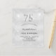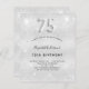 Um convite moderno, elegante e glamoroso para uma festa de aniversário de 75 anos. Um fundo com aparência de prata falsa, decorado com purpurina. Personalize e adicione seu nome e detalhes da festa. O número 75 é escrito com uma fonte estilo balão, manuscrita.