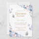 Here is the editable Blue and Gold Quinceañera Invitation with a Butterfly Party Theme and Floral Mis Quince Anos.