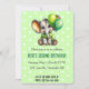 This sweet, editable birthday invitation features an illustration of an elephant holding two balloons against a light green heart background. The details of the event are below. On the back is a field for additional information. The text on both sides is editable so go ahead and change the details as well as the font style, size and colour. This versatile invitation can be used for any children's birthday milestone, baby showers etc.