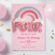 Convite Editable Rainbow Fourth Birthday Invitation, Pink