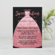Este convite de aniversário doce e elegante dos Dezesseis é o design perfeito para a menina de aniversário moderna e feminina. Sua impressão apresenta um gradiente brilhante, cor-de-rosa, impresso e brilhante, em um vestido cor-de-rosa pincesa, com um fundo preto. Na parte de trás está uma simples ombre brilhante rosa e preta. Este design é a combinação perfeita de aspectos glamourosos, clássicos e design de tendências. Isso certamente fará sua filha e seus convidados sorrirem.