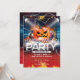 Comece com este convite eletrizante para o Dia das Bruxas! Este design apresenta um jack-o-lanterno brilhante rodeado por bolas de disco, colocado sobre um fundo de raios e chamas. Perfeito para uma festa de Halloween adulta, um evento musical de DJ ou uma noite assustadora de provando de vinho.
