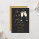 Um convite elegante para chá de noiva com taças de champanhe e nome em letra cursiva, este convite sofisticado pode ser personalizado com suas informações em letras douradas em fundo preto. Com o código QR do seu registro no verso. Criado por Thisisnotme©