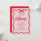 Esta moda, retrô, e moderna chá de panela "Ela é a cereja no topo" apresenta um fundo rosa com arco desenhado à mão e um quadro ondulado em vermelho. O verso apresenta um fundo vermelho.