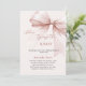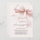 Um fundo cor-de-rosa macio, decorado com arco dourado. Personalize e adicione um nome e detalhes da parte. Texto: Ela é casando.