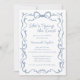 Ponha o tom para o seu chá de panela com o nosso Casando Chá de panela de Arco Azul. O convite, maravilhosamente adorado com um arco azul, e design de inspiração coquete, não só captará a atenção de seus hóspedes, como também definirá uma aura de romance e elegância para o dia especial que se aproxima.