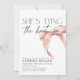 Este Chá de panela mínimo apresenta um arco de aquarela desenhado manualmente em rosa-pincelado. O moderno tema "Ela é casando" é perfeito para um Partido Hen feminino, mas moderno. Na parte de trás você pode adicionar sua própria foto de bela noiva.