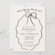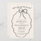 Chá de panela na moda Cream e Arco de porta preta desenhada com um quadro de fita oval ondulada puxado pela mão, cortado com um arco. A manchete editável "ela é casando" está na letra preta do estilo manuscrito.