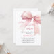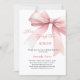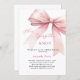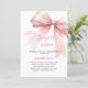 Um fundo branco elegante, decorado com um arco de cor rosa. Personalize e adicione um nome e detalhes da parte. Texto: Ela é casando.
