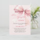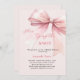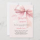 Um elegante fundo rosa, decorado com um arco cor-de-rosa. Personalize e adicione um nome e detalhes da parte. Texto: Ela é casando.