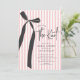 Elevem seu Chá de panela com nossa cinza moderna e nosso convite listrado branco, projetado para impressionar. Apresentando um arco de fita de coquete preto-chic, este convite exude elegância enquanto o fundo de fita rosa-prece adiciona um toque de sofisticação. Perfeitamente desenhado para dar o tom ao seu dia especial, convida os seus convidados a celebrar a sua história de amor em estilo.