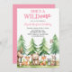 Ela é uma selvagem - Convite para primeiros aniversarios Woodland! Os animais de floresta costeira temem o convite para primeiro aniversario com ilustrações de um gambá, pomada, urso, raposa, guaxinim, rato, alce e coruja na cena da floresta. Animais divertidos e brincalhões fazem o convite perfeito para seu primeiro aniversario.