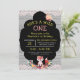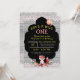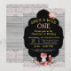 Whimsical e divertido, um convite perfeito para o seu aniversário do Wild One! Possui uma raposa de floresta, flores, e uma bonito madeira e um fundo de renda. O verso da placa apresenta madeira e padrão de local. Chapas de papel, guardanapos e adesivos disponíveis na minha loja. Design ©2019 Rosalind Moore, Design de Cherry Lane.