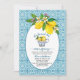 Um design elegante com fundo de azulejo azul e uma xícara de limões.