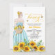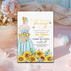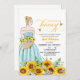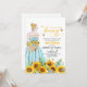 Um design elegante com noiva para estar num campo de girassol e uma caligrafia elegante.