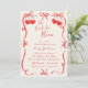 Arcos manuscritos e chá de panela de cerejas com o tema "ela encontrou seu namorado". Design apresenta tipografia manchada em uma moldura de onda branca com arcos e cerejas em forma de coração. Paleta de cores vermelha e creme, perfeita para Dia de os namorados ou chá de panela de fevereiro, tema de amor, tema de cereja, arco de coquete ou tema vermelho. Procure mais designs na minha coleção de Chás de panela de Namorados e envie-me uma mensagem se precisar de lista de itens de coordenação.