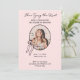 Este design moderno apresenta uma estética coquete de arco rosa e a foto da sua noiva. Personalize com o nome da noiva, foto e a data e/ou local.